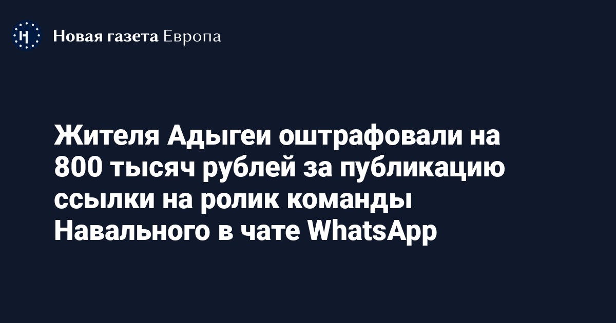 Красногвардейский районный суд Адыгеи оштрафовал 39-летнего Игоря Короткова на 800 тысяч рублей по делу о «фейках» про российскую армию (ч. 1 ст. 207.3 УК) за ссылку на видео канала «Навальный Live». Об этом сообщает «Кавказ.Реалии».