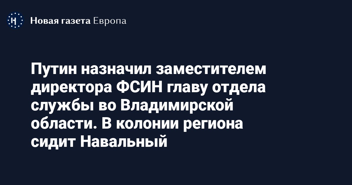 Путин назначил заместителем директора ФСИН главу отдела службы во Владимирской области. В колонии региона сидит Навальный