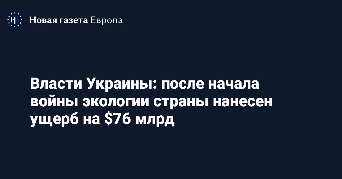 Экологический ущерб, нанесенный Украине полномасштабным вторжением России, составляет три триллиона гривен (76 млрд долларов). Об этом заявил министр защиты окружающей среды и природных ресурсов Украины Руслан Стрелец, его слова приводит «Интерфакс-Украина».