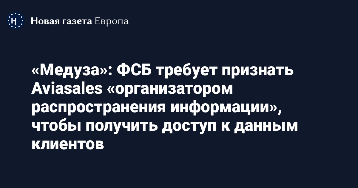ФСБ обратилась в Роскомнадзор и попросила признать поисковик авиабилетов Aviasales «организатором распространения информации» (ОРИ), выяснила «Медуза» из утечки переписки сотрудников РКН, предоставленной группой белорусских хакеров «Киберпартизаны».