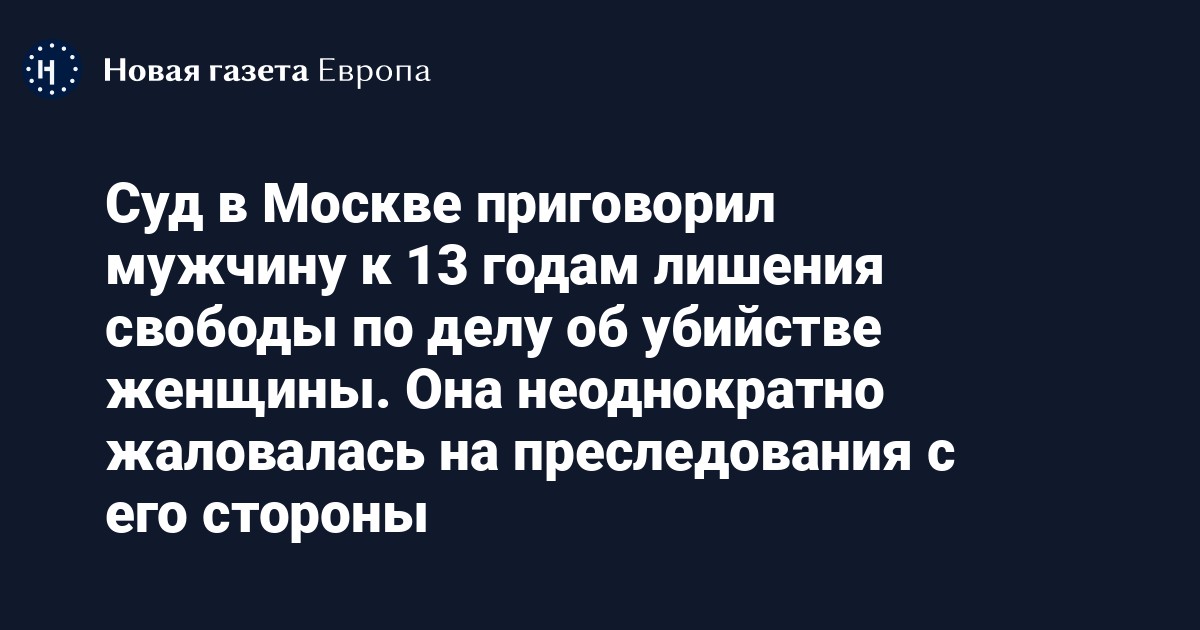 Суд в Москве приговорил мужчину к 13 годам лишения свободы по делу об убийстве женщины. Она неоднократно жаловалась на преследования с его стороны