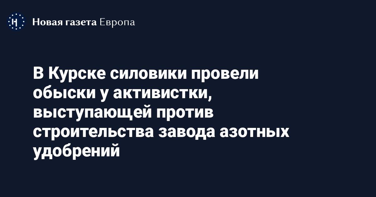 «Вчера в моей квартире и рабочем офисе прошли обыски. Проверяющие и не скрывают, что их активность связана с моей позицией против строительства завода азотных удобрений в Курске», — сообщила активистка.