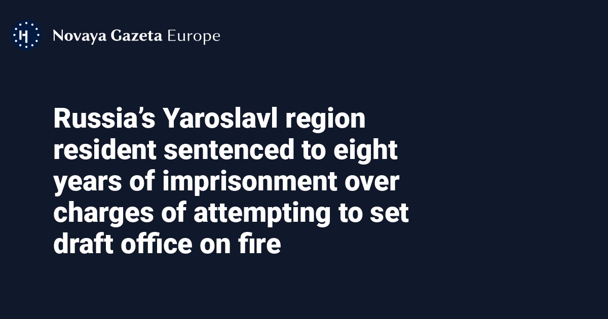The Second Western District Military Court has sentenced a resident of the town of Uglich, Denis Popov, to eight years behind bars over charges of attempting to set fire to a draft office, Kommersant reports, citing the press service of the regional Federal Security Service (FSB).