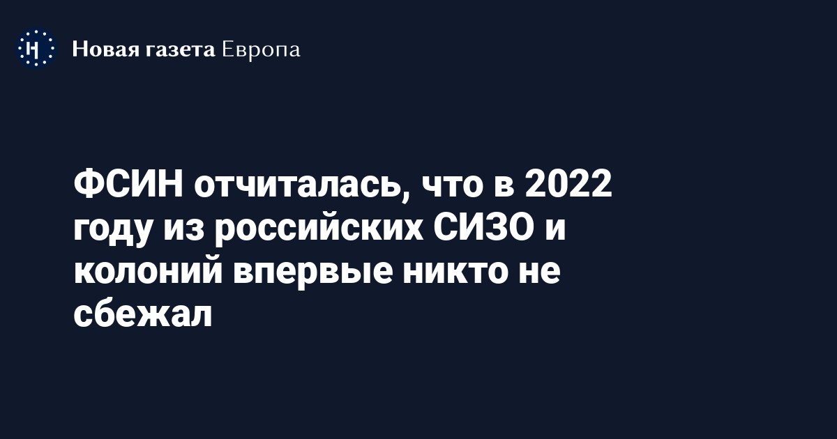 В 2022 году впервые в современной истории из исправительных колоний и СИЗО в России никто не сбежал ни один человек, отчитался директор Федеральной службы исполнения наказаний (ФСИН) Аркадий Гостев на коллегии ведомства по итогам работы за предыдущий год.