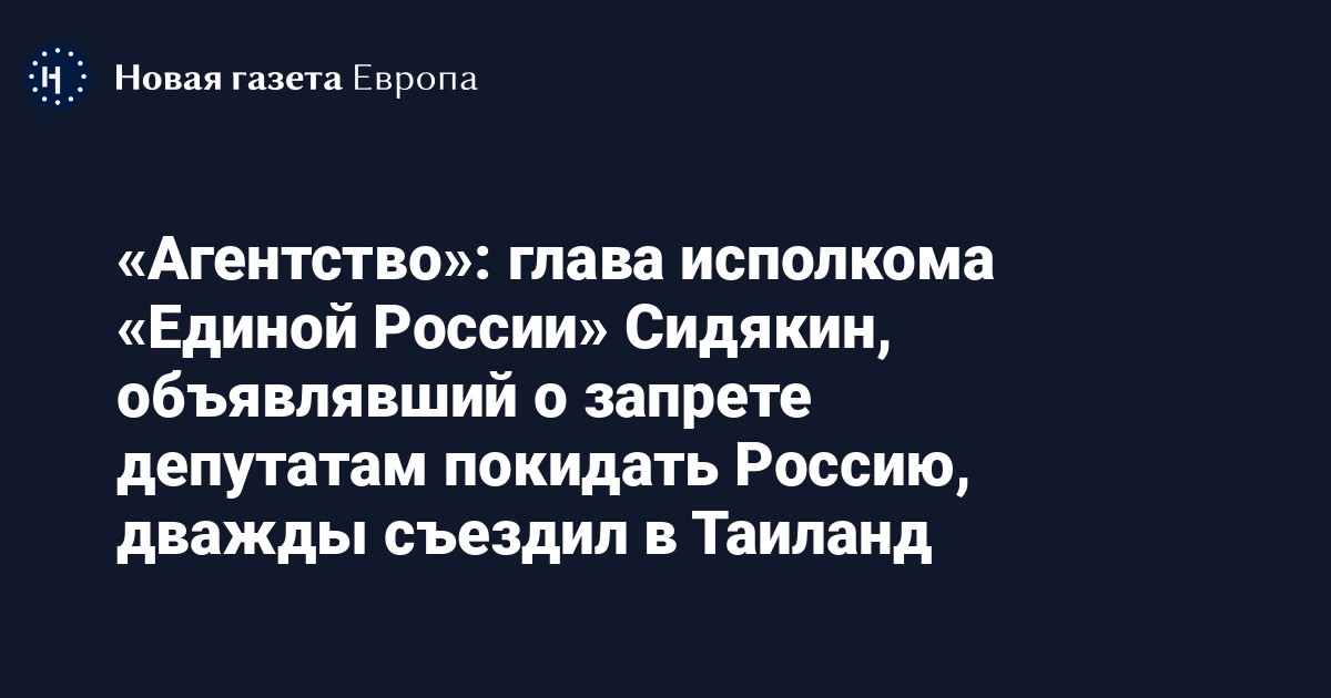 «Агентство»: глава исполкома «Единой России» Сидякин, объявлявший о запрете депутатам покидать Россию, дважды съездил в Таиланд