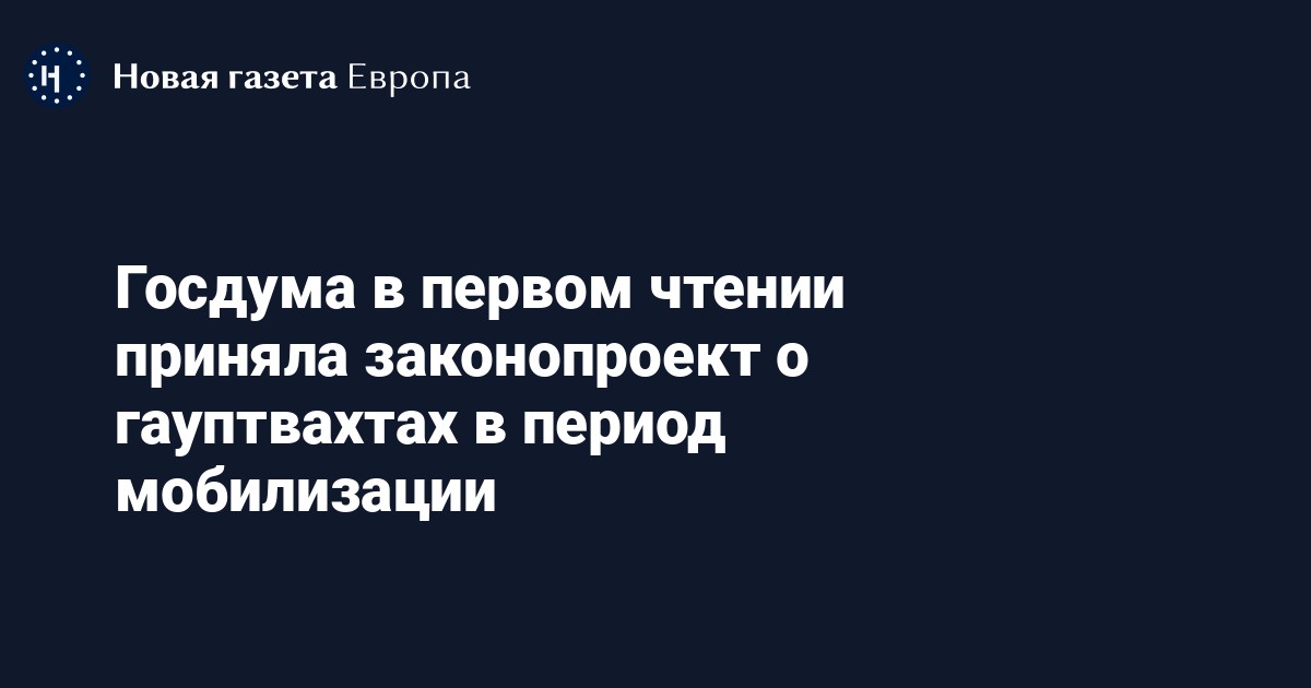 Государственная дума РФ в первом чтении приняла законопроект о дисциплинарном аресте в период мобилизации, военного положения и военного времени. Об этом сообщается на портале обеспечения законодательной деятельности.