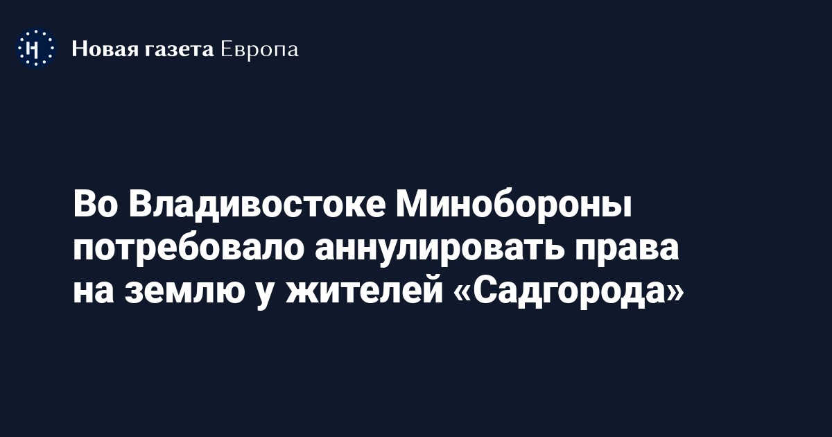 Министерство обороны РФ потребовало у жителей района «Садгород» в пригороде Владивостока аннулировать права собственности на земельные участки. Об этом сообщил губернатор региона Олег Кожемяко.