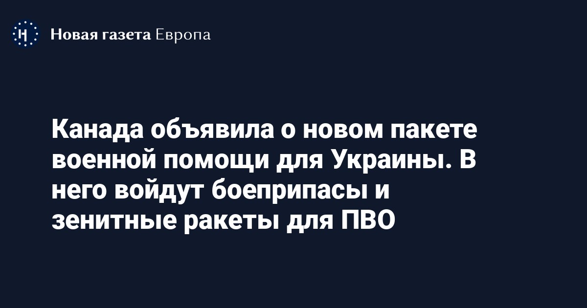 По итогам десятой встречи контактной группы по обороне Украины в формате «Рамштайн» Канада объявила о новом пакете военной помощи, в который войдут боеприпасы и зенитные ракеты. Об этом говорится в пресс-релизе на сайте канадского правительства.