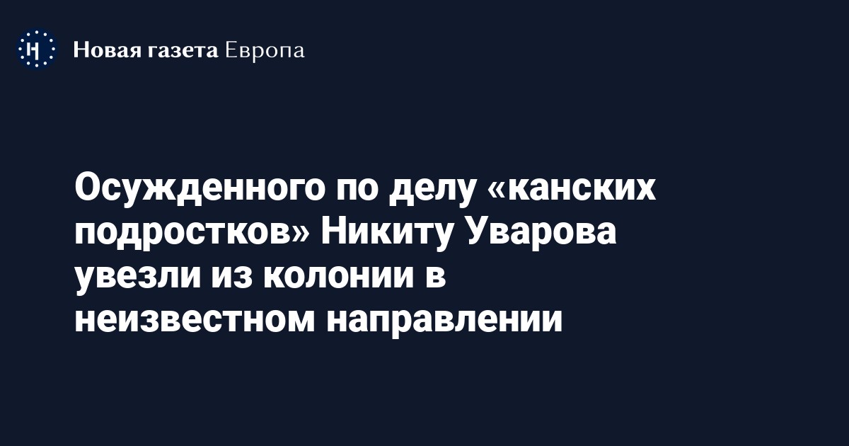Осужденного по делу «канских подростков» Никиту Уварова увезли из колонии в неизвестном направлении. Об этом его мать Анна Уварова рассказала «Новой газете Европа».