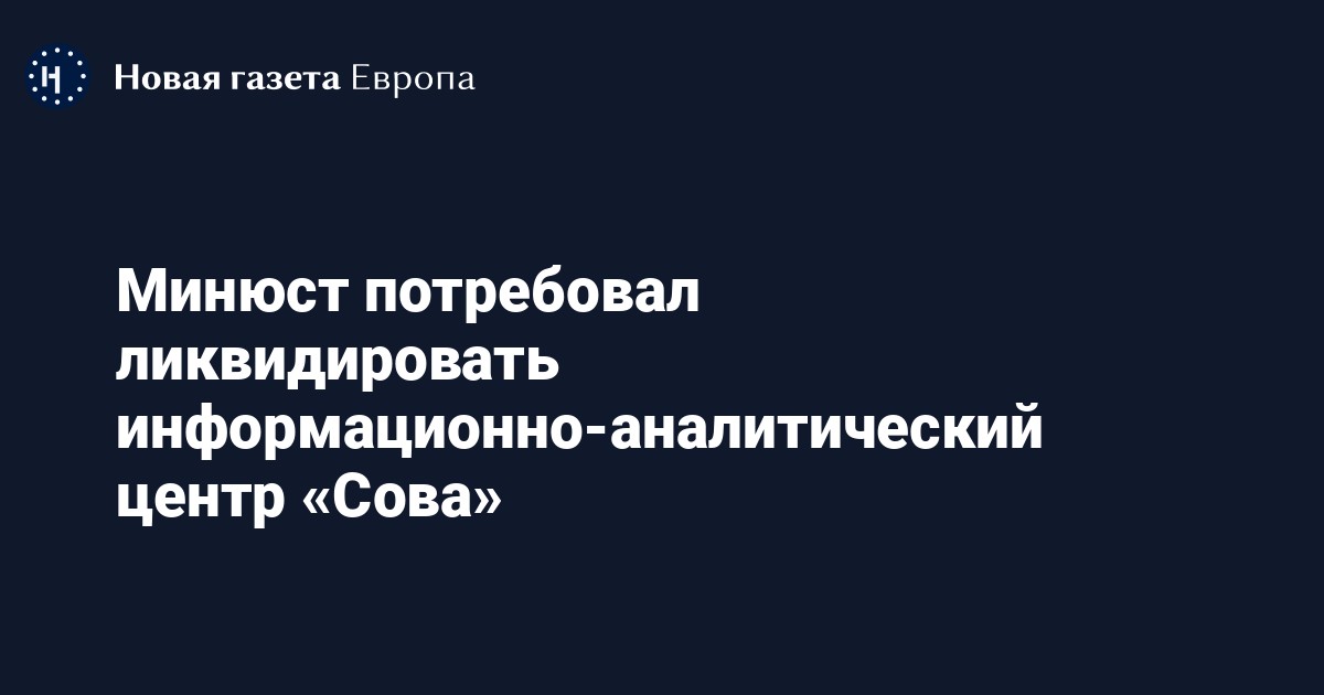 Главное управление Министерства юстиции по Москве обратилось в Московский городской суд с иском о ликвидации Центра «Сова». Об этом сообщили в самом информационно‑аналитическом центре.