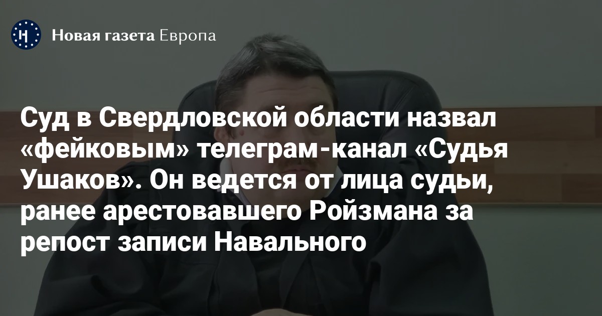 Суд в Свердловской области назвал «фейковым» телеграм-канал «Судья Ушаков». Он ведется от лица судьи, ранее арестовавшего Ройзмана за репост записи Навального