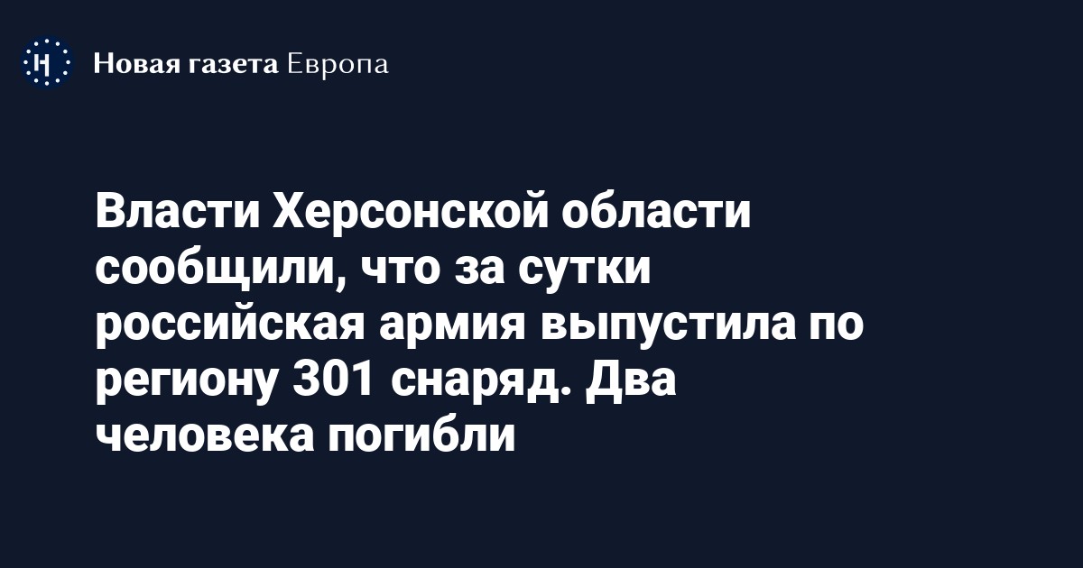 За прошедшие сутки российская армия выпустила по Херсонской области 301 снаряд, в результате чего два человека погибли и еще шесть получили ранения. Об этом сообщил глава администрации региона Александр Прокудин.