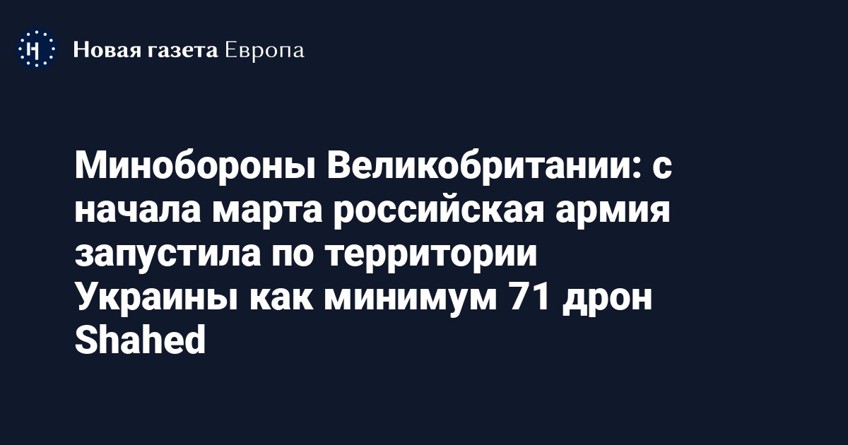 С начала марта 2023 года российская армия запустила по территории Украины как минимум 71 дрон Shahed иранского производства, утверждает Минобороны Великобритании.
