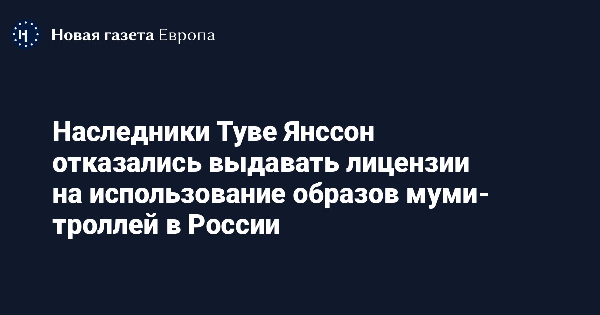 Компания наследников финской писательницы и художницы Туве Янссон Moomin Characters отказалась выдавать новые лицензии на использование образов муми-троллей в России и не продлевает действующие соглашения. Об этом VPost узнал от представителя компании.