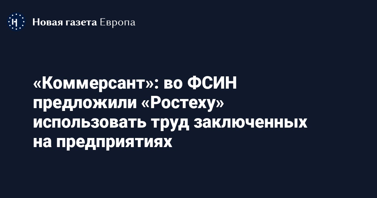Директор Федеральной службы исполнения наказаний (ФСИН) Аркадий Гостев направил главе «Ростеха» Сергею Чемезову письмо с предложением использовать труд заключенных для нужд госкорпорации по разработке, производству и экспорту промышленной продукции. Об этом сообщает «Коммерсант».