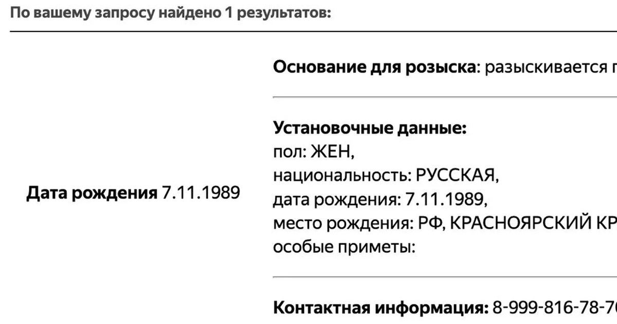 Скриншот: база розыска