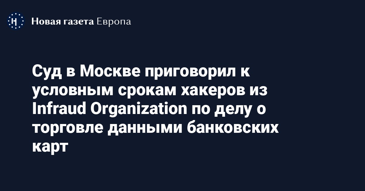 Суд в Москве приговорил к условным срокам хакеров из Infraud Organization по делу о торговле данными банковских карт
