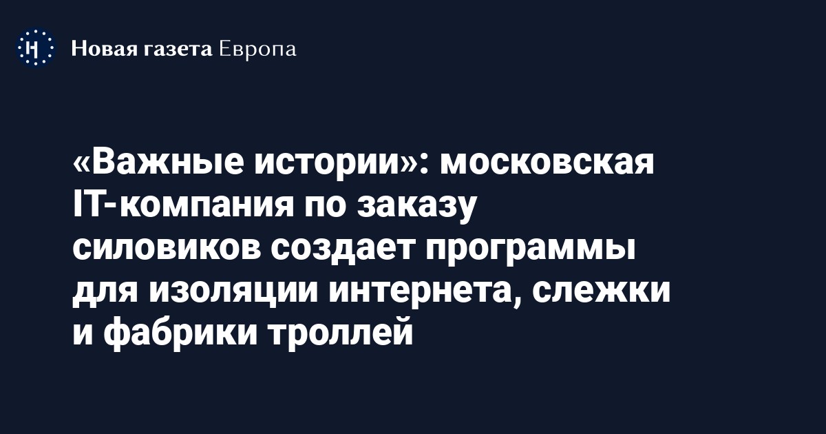 Небольшая московская IT-компания «Вулкан» по заказу Минобороны, ФСБ и СВР разрабатывает программное обеспечение для слежки за пользователями интернета, российских кибератак, управления фабрикой троллей и изоляции интернета, говорится в расследовании «Важных историй» и Süddeutsche Zeitung, а также The Guardian, Washington Post, Paper Trail Media и других изданий.