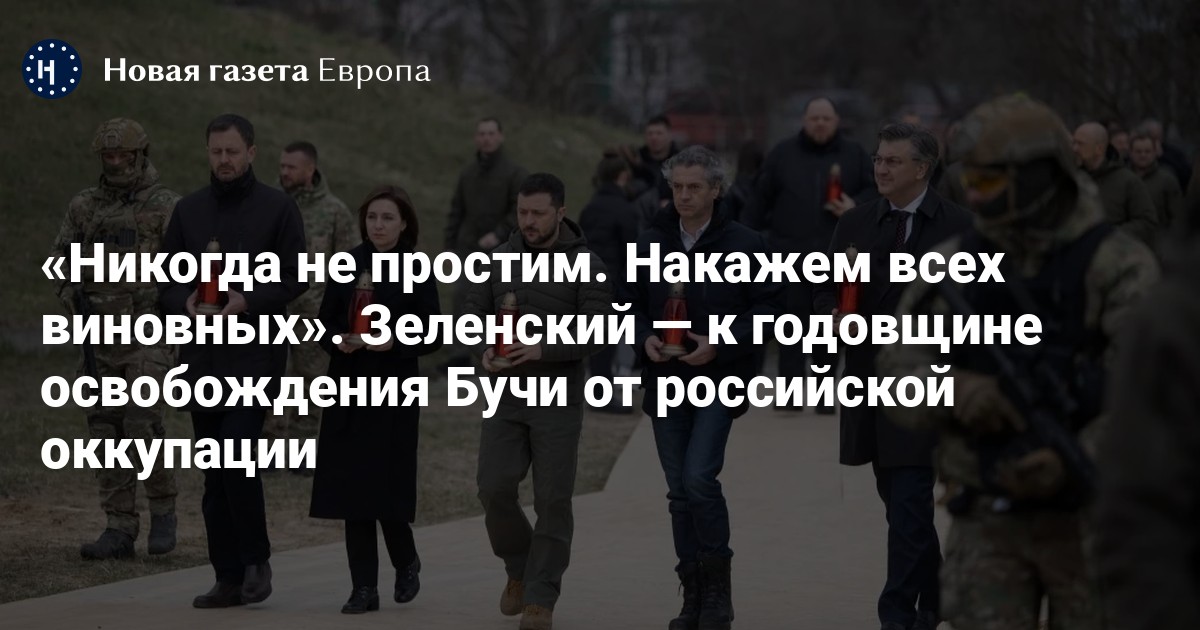«Буча. 33 дня оккупации. Более 1400 смертей, из них 37 — детские. Более 175 человек найдены в братских могилах и камерах пыток. 9000 российских военных преступлений. 365 дней, как это снова свободный украинский город. Символ зверств армии страны-оккупанта. Никогда не простим. Накажем всех виновных», — заявил Зеленский в своем телеграм-канале.