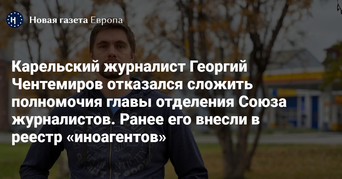 Карельский журналист Георгий Чентемиров отказался сложить полномочия главы отделения Союза журналистов региона. Об этом журналист написал на своей странице «Вконтакте».