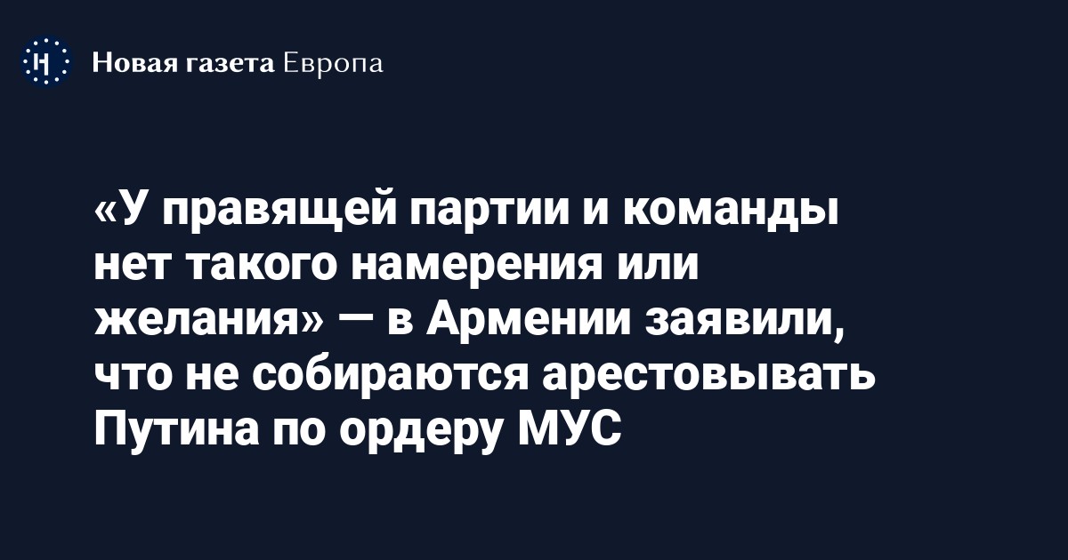 «У правящей партии и команды нет такого намерения или желания» — в Армении заявили, что не собираются арестовывать Путина по ордеру МУС