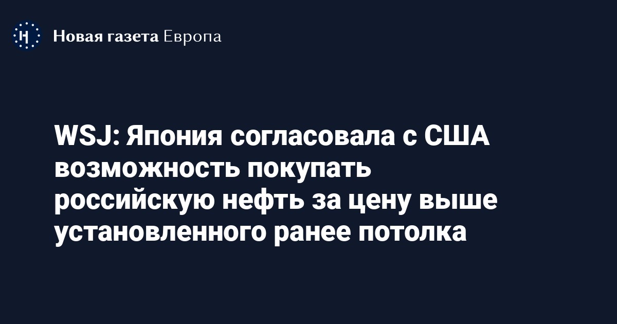 Япония согласовала с США возможность покупать российскую нефть за цену выше $60 за баррель. Об этом сообщает The Wall Street Journal.