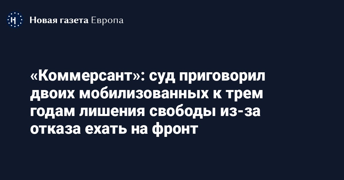 «Коммерсант»: суд приговорил двоих мобилизованных к трем годам лишения свободы из-за отказа ехать на фронт