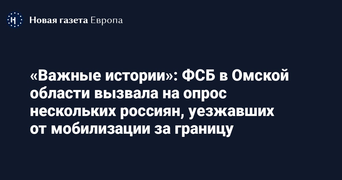 Главное управление ФСБ по Омской области вызвало на «опрос» нескольких жителей региона, которые во время мобилизации уезжали за границу и недавно вернулись в Россию. Об этом пишут «Важные истории» со ссылкой на своих подписчиков и сотрудника спецслужбы.