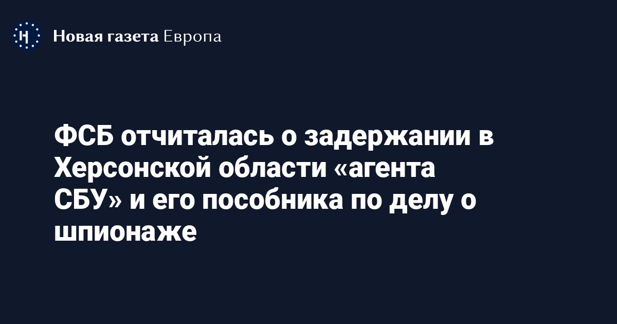 Федеральная служба безопасности России отчиталась о задержании в Херсонской области двоих граждан по делу о шпионаже (ст. 276 УК). Об это сообщает «Интерфакс».