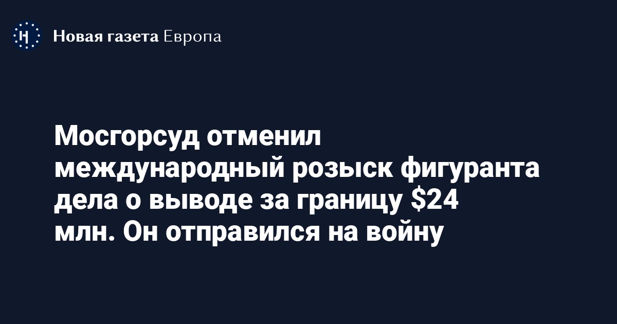 Мосгорсуд отменил международный розыск менеджера Александра Дагуцы, обвиняемого в выводе за границу 24 млн долларов, пишет «Коммерсант». Мужчина заключил контракт и отправился в Украину в составе подразделения десантно-штурмового полка.