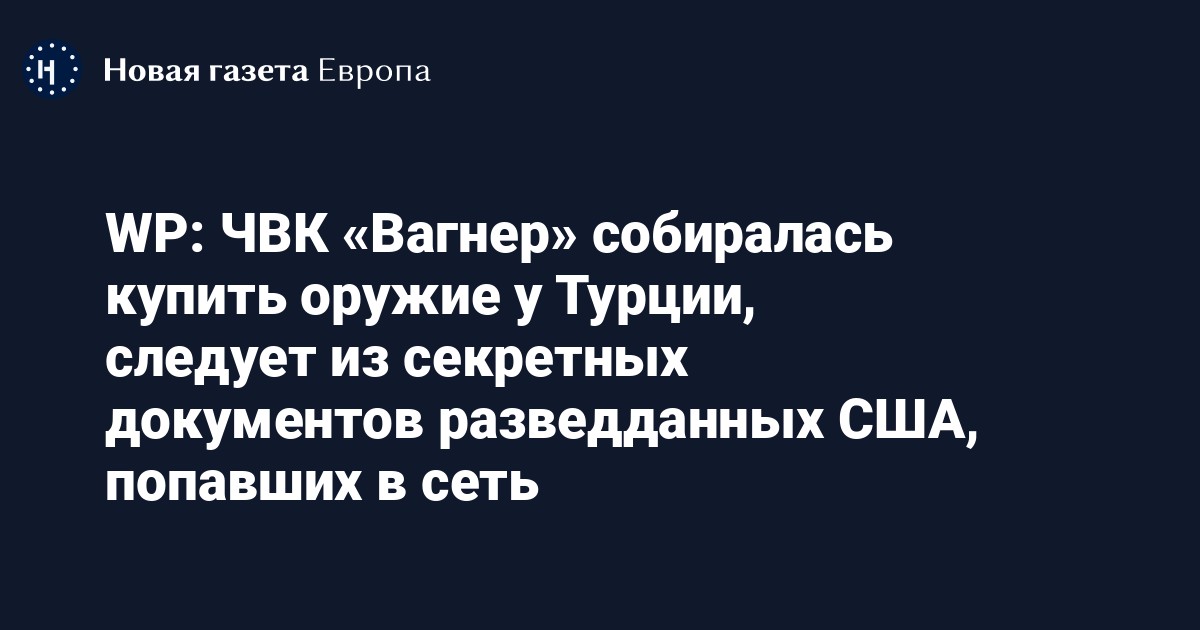 Журналисты The Washington Post проанализировали более 50 страниц секретных документов по нацбезопасности США, недавно попавших в сеть. В том числе, в них имелись данные американской разведки о том, что российская ЧВК «Вагнер» планировала купить оружие для войны против Украины у Турции — действующего члена НАТО. Об этом сообщает само издание.