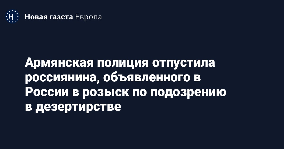 Полиция Армении отпустила разыскиваемого по подозрению в дезертирстве россиянина, о задержании которого сообщалось накануне. Об этом Генпрокуратура республики сообщила изданию Armenia Today.