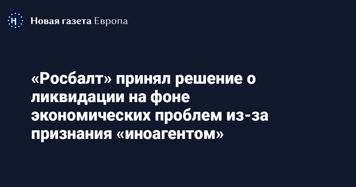 Акционеры компании «РС-Балт», которая является учредителем информагентства «Росбалт», приняли решение о ликвидации организации. Сообщение об этом появилось на сайте федерального реестра сведений о деятельности юридических лиц.
