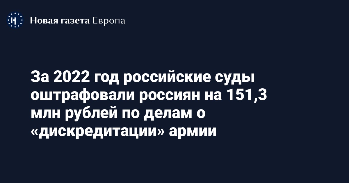 За 2022 год российские суды оштрафовали россиян на 151,3 млн рублей по делам о «дискредитации» армии