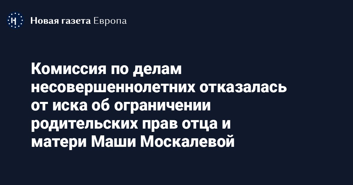 Комиссия по делам несовершеннолетних и защите их прав города Ефремова отозвала иск об ограничении родительских прав отца и матери Маши Москалевой, которая нарисовала на уроке в школе антивоенный рисунок, сообщает председатель комиссии Светлана Давыдова.
