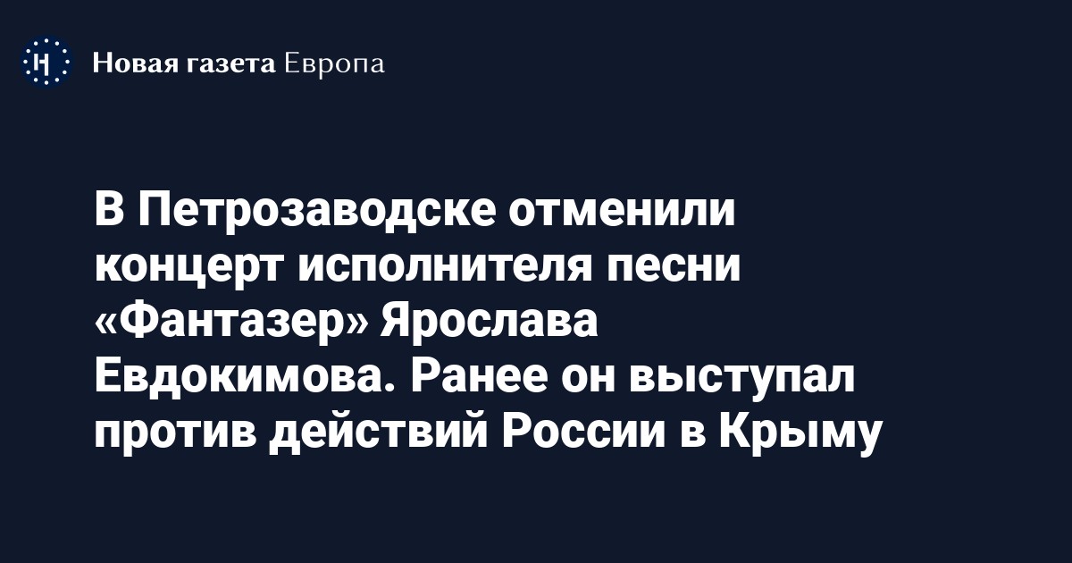В Петрозаводске отменили концерт исполнителя песни «Фантазер» Ярослава Евдокимова. Ранее он выступал против действий России в Крыму