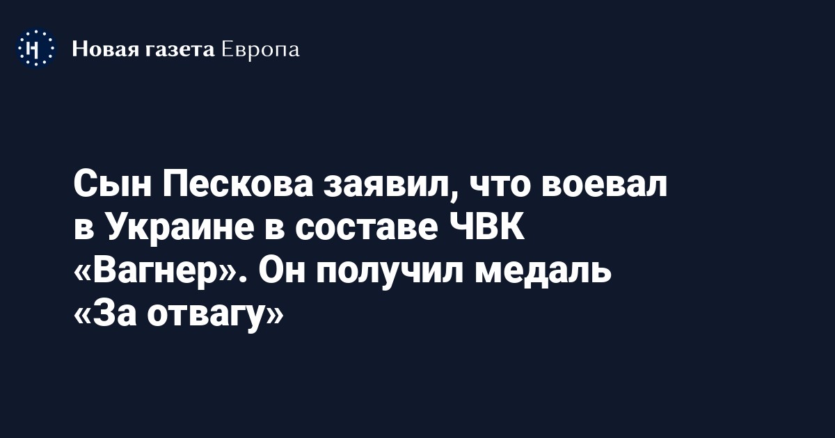 Николай Песков, сын пресс-секретаря президента РФ Дмитрия Пескова, в интервью «Комсомольской правде» рассказал, что был на войне в Украине в составе частной военной компании «Вагнер».