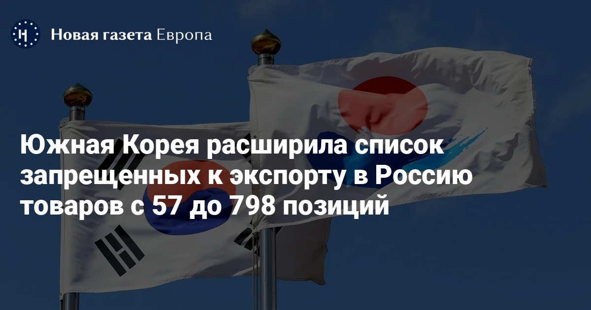 Южная Корея расширила список запрещенных к экспорту в Россию товаров с 57 до 798 позиций