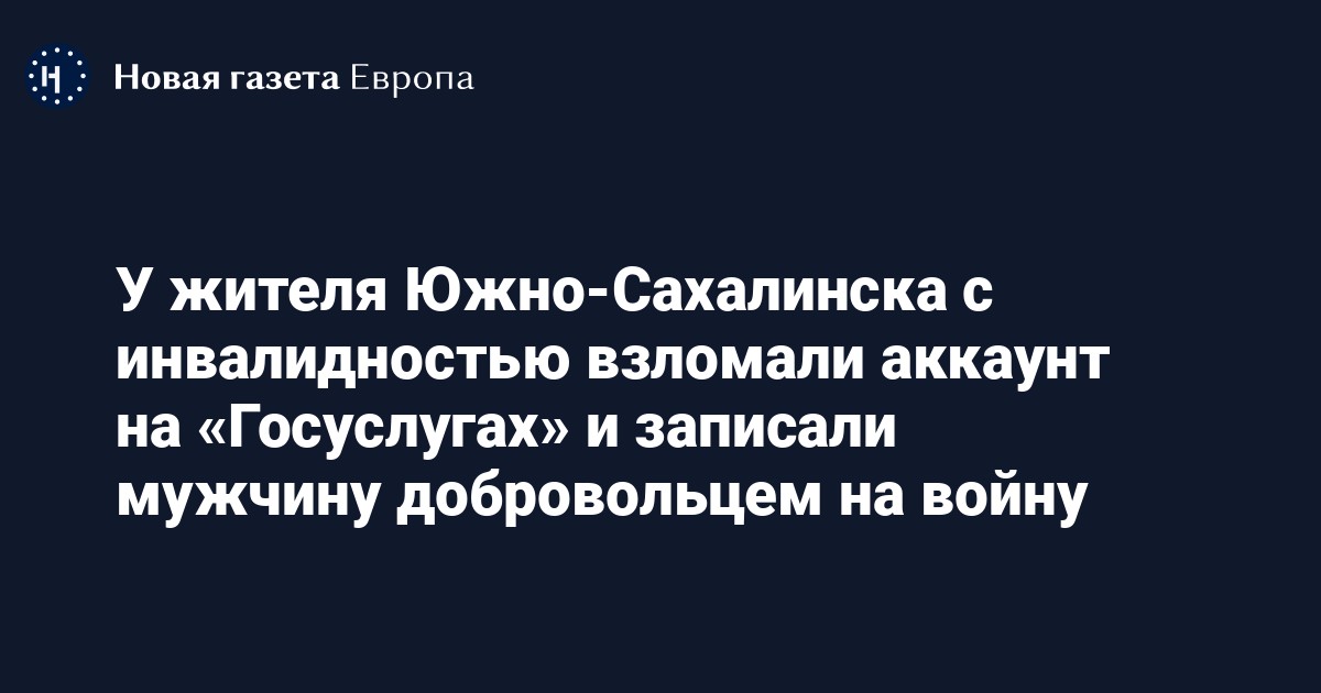 Житель Южно-Сахалинска рассказал полиции, что у него взломали аккаунт на «Госуслугах» и записали добровольцем на войну в Украине. Об этом пишет пресс-служба МВД.