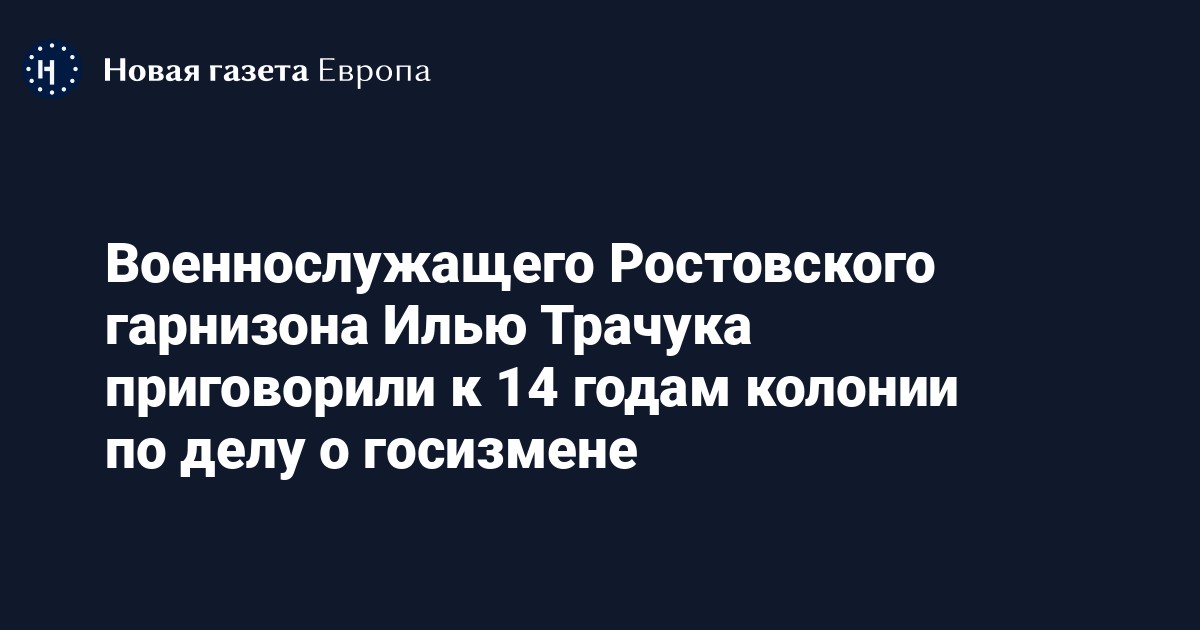 Южный окружной военный суд в Ростове-на-Дону приговорил ефрейтора Илью Трачука к 14 годам колонии строгого режима по делу о госизмене (ст. 275 УК) и незаконном доступе к гостайне (ч. 2 ст. 283.1 УК). Об этом сообщает ТАСС.