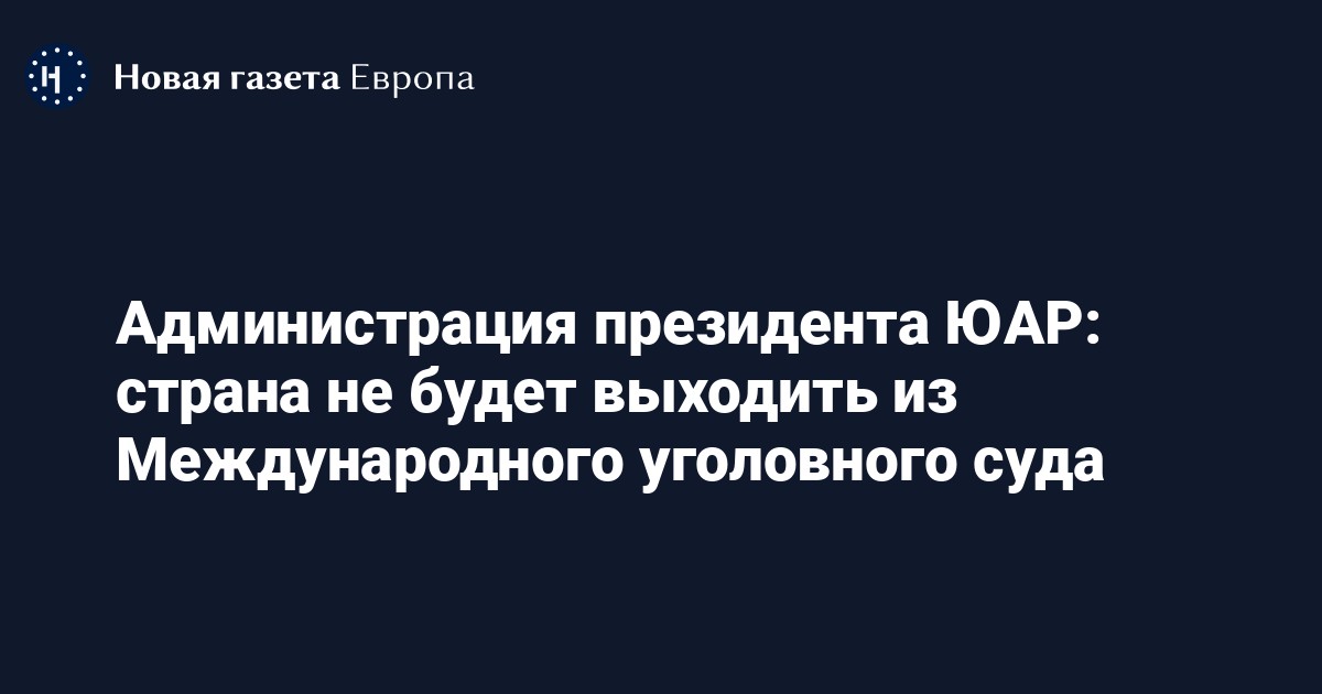 Ранее президент ЮАР Рамафоса заявил, что правящая партия приняла решение о выходе страны из Международного уголовного суда, который в прошлом месяце выдал ордер на арест президента России Владимира Путина.