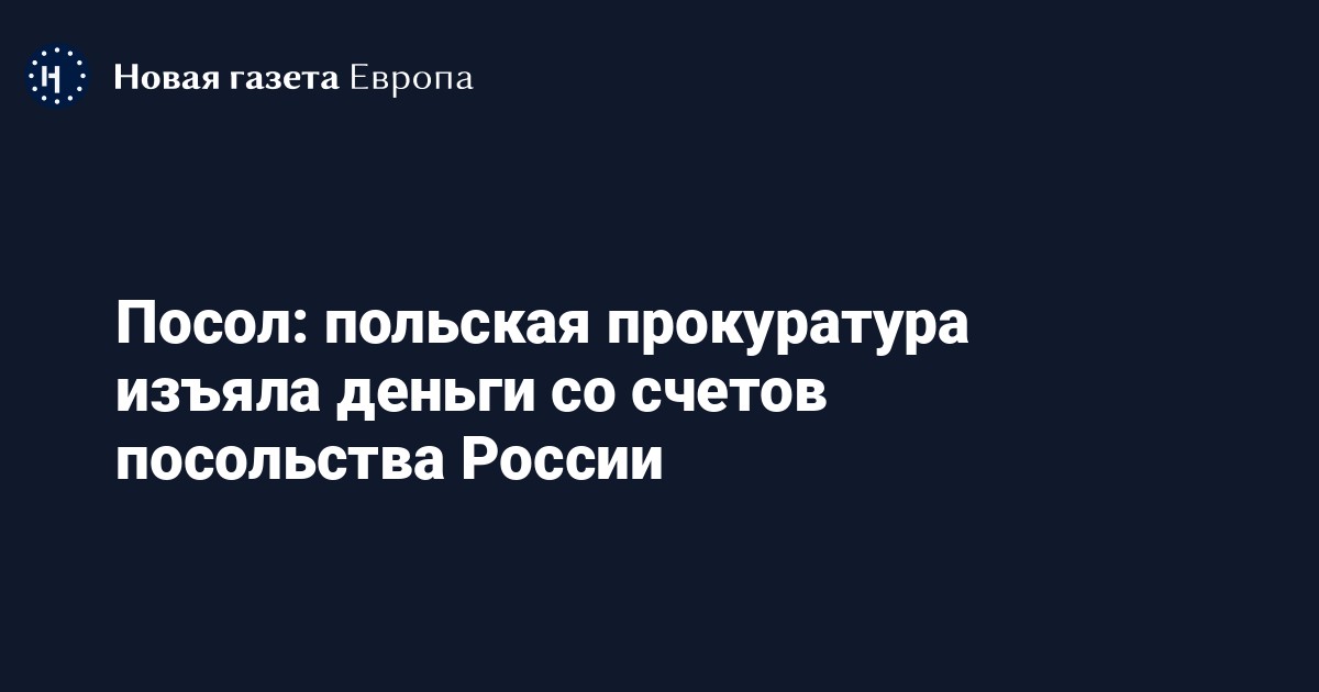 Счета посольства РФ в Польше были заблокированы польской прокуратурой в начале марта 2022 года. По данным СМИ, речь идет о 800 тыс. злотых (около $180 тыс.) и $912 тыс.