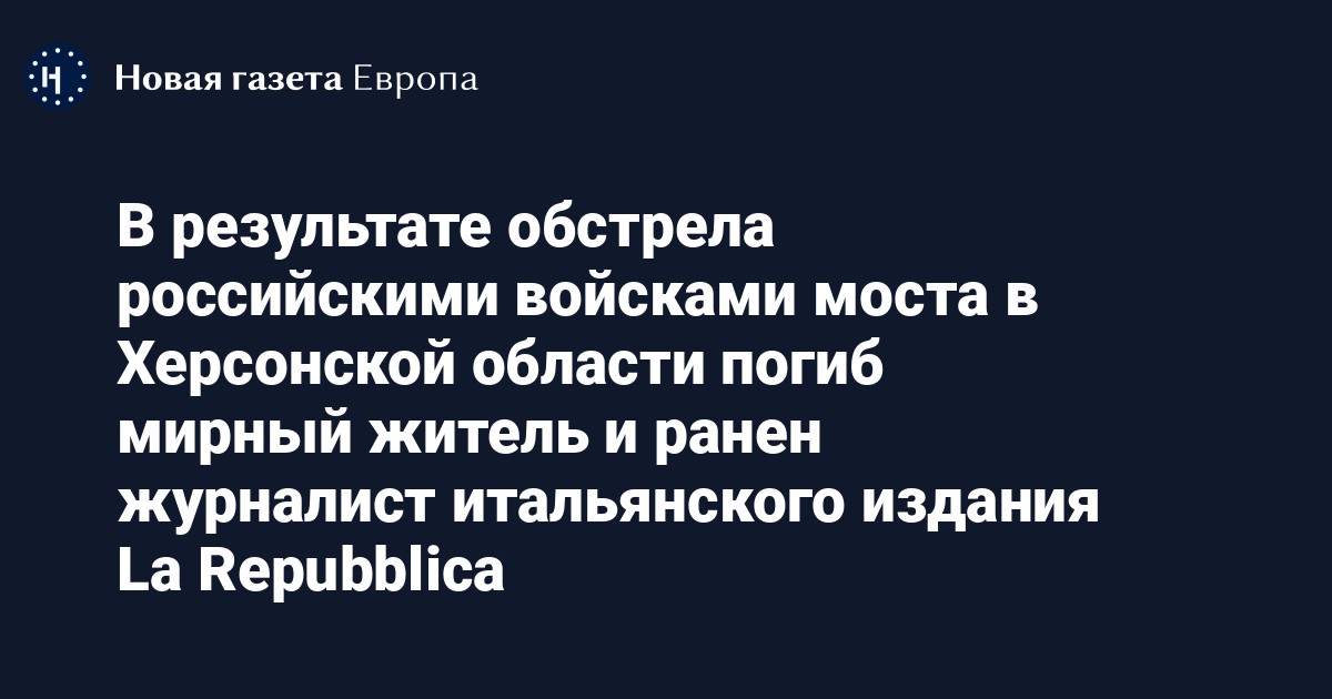 В результате обстрела моста в Херсонской области погиб мирный житель и ранен журналист итальянского издания La Repubblica. Об этом сообщает офис генерального прокурора Украины.