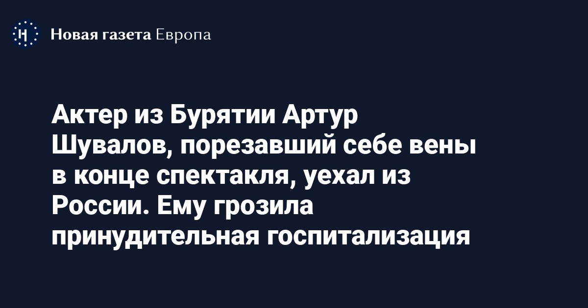 Актер Русского драматического театра в Улан-Удэ Артур Шувалов, в конце марта порезавший себе вены в конце спектакля, уехал из России в третью страну. Об этом сообщает SOTA.