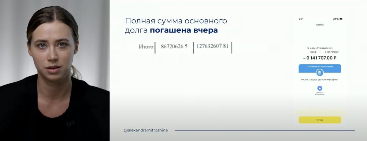Она также признала, что ранее действительно не выплатила часть налогов. По ее словам, она, «начиная примерно с 2020 года, не уделила должного внимания сфере бухгалтерии и налогов».
