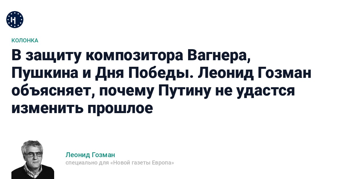 Конечно, Вагнера не играли не только из-за музыкальных пристрастий Гитлера: есть версия, что под его музыку нацисты расстреливали евреев, а значит, исполнение его произведений могло травмировать и выживших жертв, и всех тех, кто с ними идентифицировался. Но это совсем другое дело, это вопрос такта — когда и что играть, говорить и демонстрировать. Естественно, что публично отмечать сегодня в современной Украине 9 мая не как День Европы, а как День Победы невозможно: Украину бомбит тот самый Путин, который и пытается приписать ту Победу себе. Как невозможно и играть Вагнера на мероприятиях, посвященных Холокосту. Как и не все стихи Пушкина уместно читать, например, в Польше. Но это не означает отказа ни от Вагнера, ни от Пушкина, ни от памяти Победы.