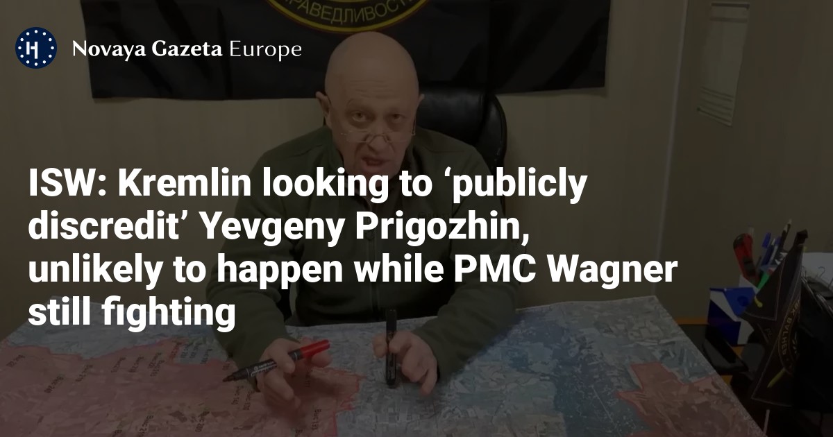 The Kremlin is likely preparing mechanisms to discredit Prigozhin as a traitor, ISW says. Russian officials had reportedly threatened Prigozhin with treason if he were to act on his attempt to blackmail the MoD into providing him more ammunition by threatening to withdraw from Bakhmut.