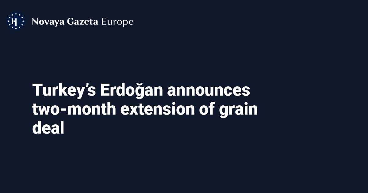 Turkish President Recep Tayyip Erdoğan has announced that parties have agreed to extend the grain deal, an agreement establishing a safe naval passage in the Black Sea for Ukrainian ships transporting agricultural produce, by two more months.