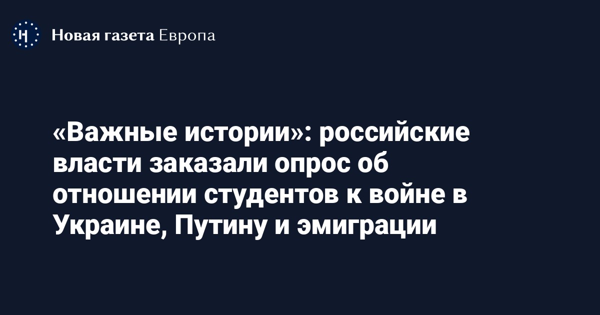 Администрация президента РФ, Минобрнауки и Минпросвещения заказали проведение соцопроса об отношении к стране, президенту и эмиграции в более чем 500 университетах России и оккупированных регионов. На то, что данные проекта оказались в публичном доступе, обратили внимание «Важные истории».
