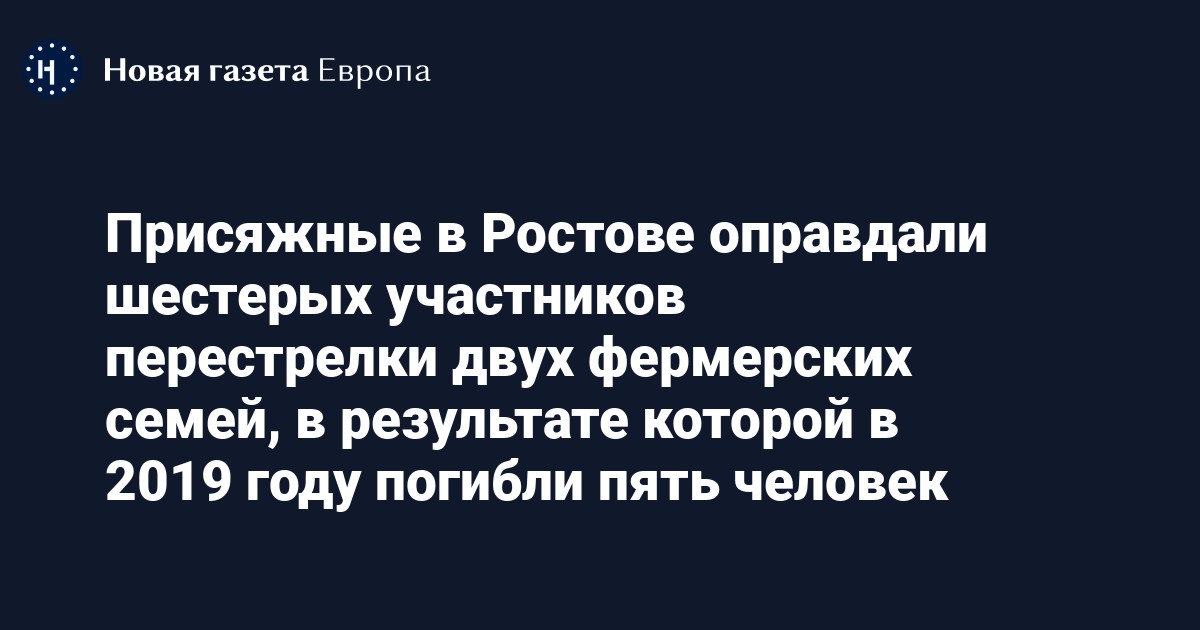 Коллегия присяжных оправдала шестерых участников перестрелки в Орловском районе Ростовской области, случившейся в октябре 2019 года, сообщили местным изданиям 161.RU и «Блокнот» в пресс-службе Ростовского областного суда.